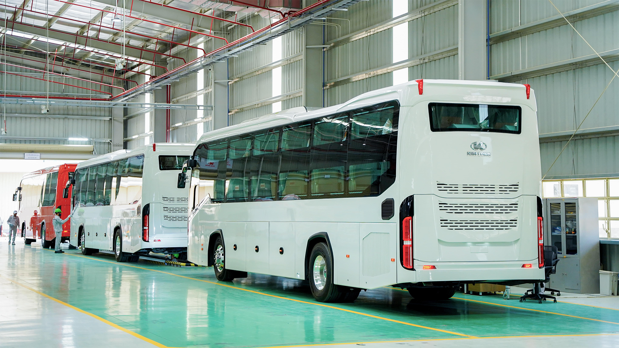 The factory is equipped with an automated production line system, capable of meeting the requirements for manufacturing and assembling a wide range of bus segments and types (including seated buses, sleeper buses, public buses, minibuses), trucks of various capacities, and specialized vehicles. The entire production process is carried out on an automated body transfer system, ensuring seamless synchronization and connectivity from the welding shop to the painting shop and the assembly shop. The factory’s products utilize engines that meet Euro 5 emissions standards or higher, making them environmentally friendly and aligned with export-oriented goals while also catering to the domestic market.